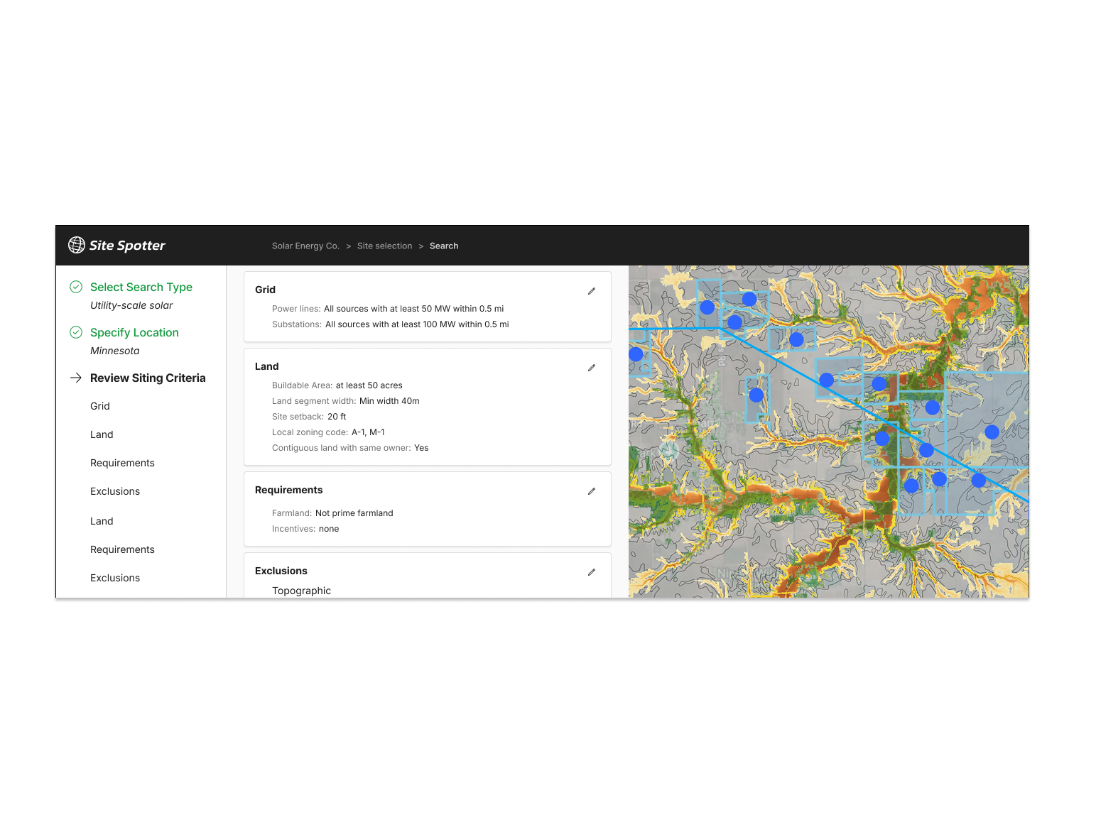 This project was an initiative to address critical business and user experience challenges in in the renewables and energy grid site selection process including a fragmented and inefficient workflow.
